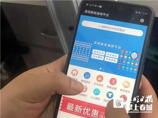 通過(guò)微信公衆号雲南家協或搜索微信小程序昆明家政誠信平台就(jiù)可以進(jìn)入該平台。平台首頁分爲家庭保潔、玻璃清洗、搬家、保姆、月嫂等10項服務,以及入駐平台的家政公司信息。